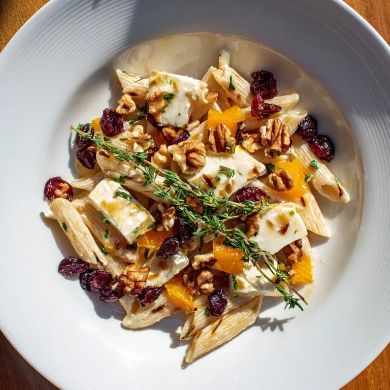 Toasted walnuts add crunch, fresh thyme infuses herbaceous notes, and a zest of orange brings brightness and balance to the creamy, fruity sauce.
