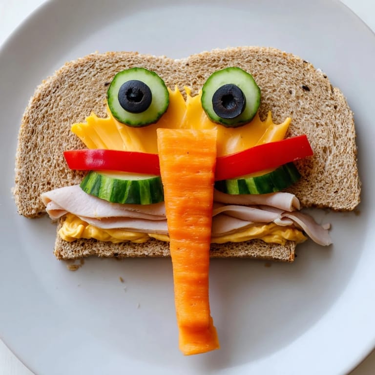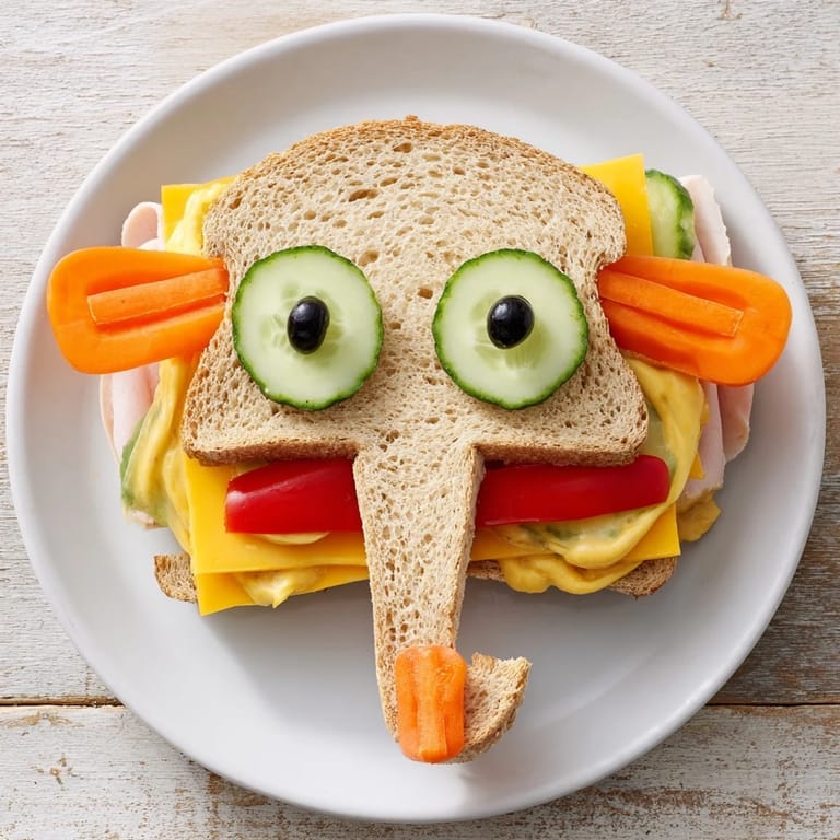 Save A whimsical and hearty platter featuring playful, elephant-shaped sandwiches, perfect for childrens parties or circus-themed gatherings.