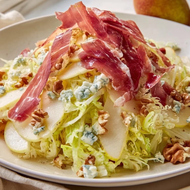 Save The first time I served this salad was during a rushed dinner party prep when I realized my planned main was taking twice as long as expected. I threw together what I had in the fridge—some frisée from the farmers market, a couple of pears sitting on the counter, and prosciutto I'd crisped earlier that day. Everyone kept asking for seconds, and honestly, the salad ended up being the star of the show.
