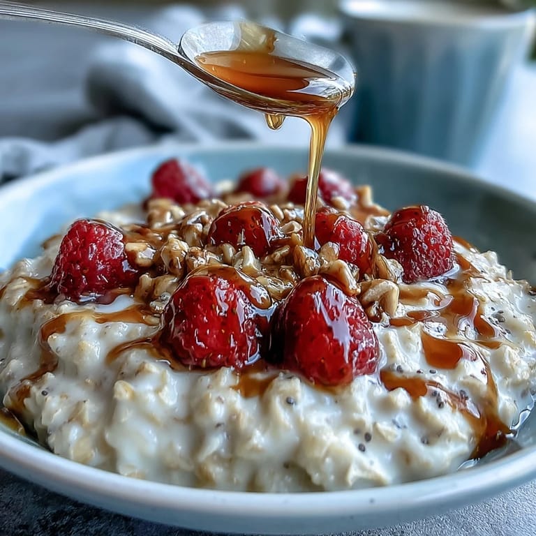 Save There's something quietly magical about waking up to breakfast already waiting for you, and that's exactly what happened the first morning I assembled these overnight oats in a mason jar. I'd stayed up late the night before, stressed about a tight deadline, and the last thing I wanted was to fuss with cooking anything complicated. Instead, I found myself standing in my kitchen at 11 PM, stirring together oats and milk like I was brewing a spell, watching the chia seeds sink into the creamy mixture. By morning, the whole thing had transformed into this luscious, ready-to-eat bowl of comfort that somehow made the day feel more manageable before it even started.