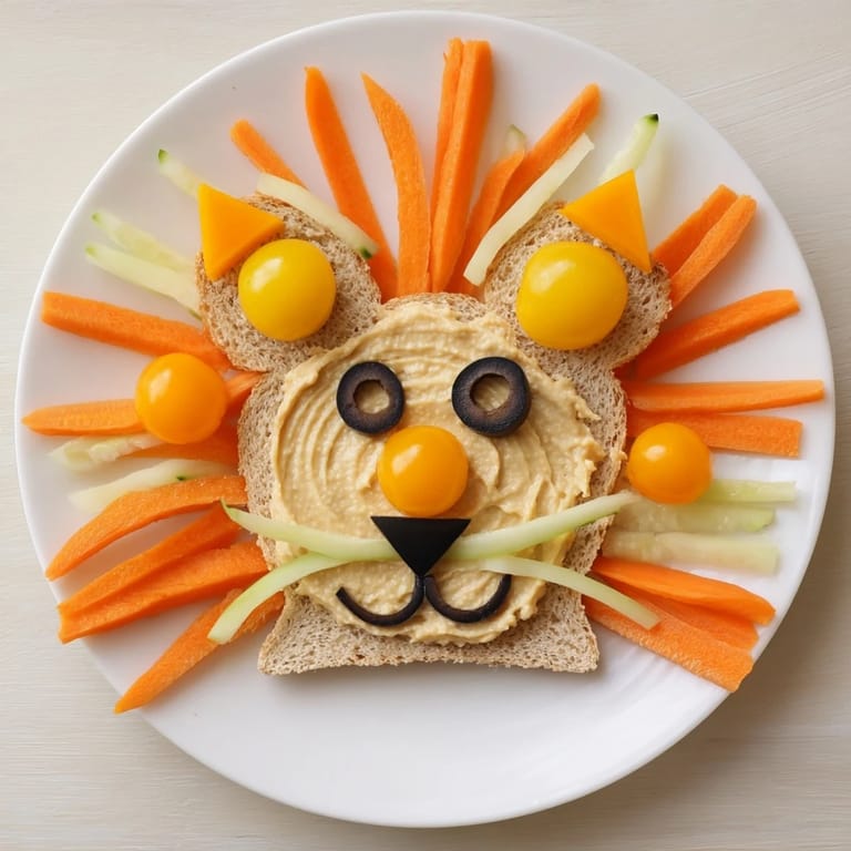 - Arrange shredded carrots and orange bell pepper strips in a circle around each sandwich thin to create the lions mane alternating colors for a lively effect.