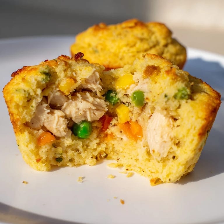 Save Savory bite-sized muffins combining tender chicken pot pie filling with a fluffy cornbread crust are perfect for parties snacks or a fun dinner twist. These mini chicken pot pie cornbread muffins offer a playful and delicious take on a classic comfort food in appetizer form.