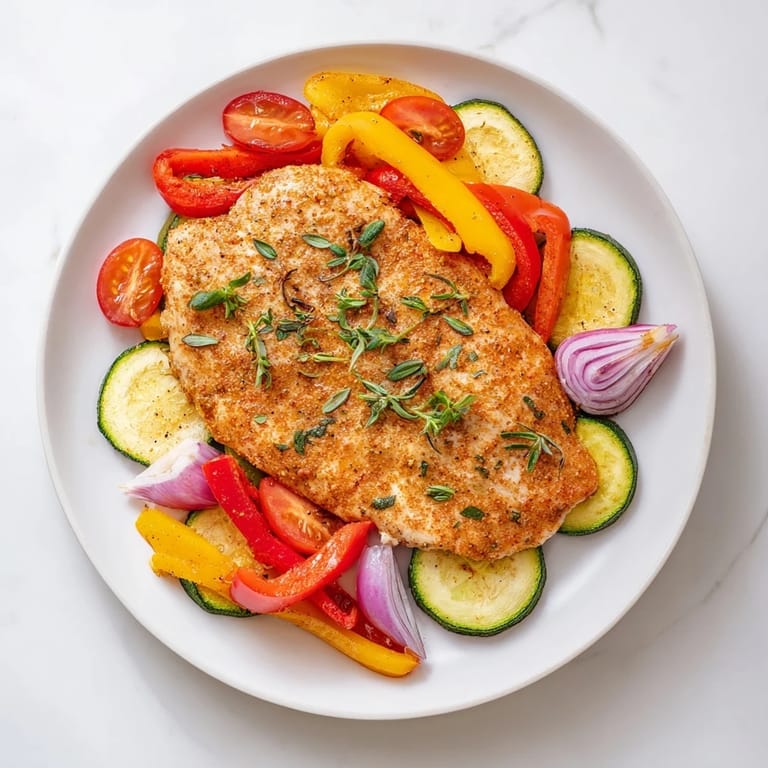 Save Tender chicken cutlets roasted on a sheet pan with bright lemon, aromatic oregano, and colorful vegetables for a quick, flavorful, and healthy meal.