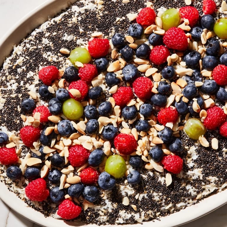 - Berries & Fruit: 1/2 cup fresh blueberries, 1/2 cup fresh raspberries, 1/2 cup halved seedless grapes (red or green)