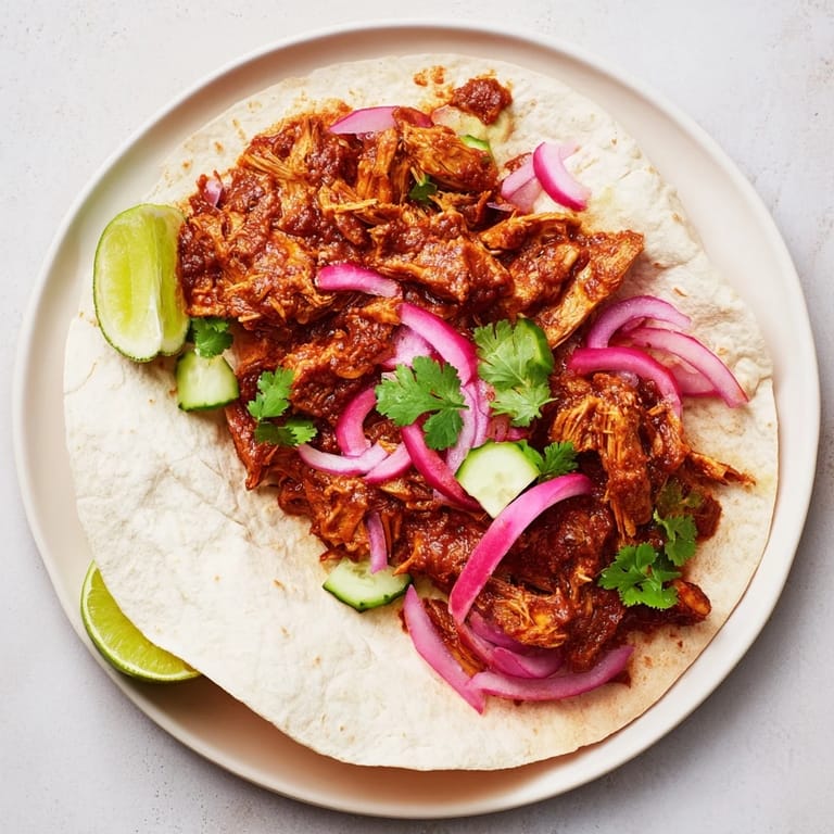 Save A fusion of Indian and Mexican favorites: tender slow-cooked chicken tikka masala wrapped in soft taco shells, finished with a sticky, flavorful glaze and fresh toppings.