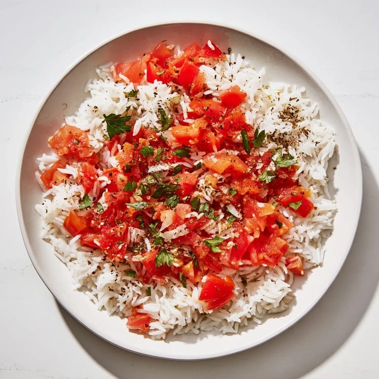 Save A simple, comforting one-pan meal of tender rice simmered with juicy tomatoes, onion, and a hint of garlic—perfect for busy weeknights.