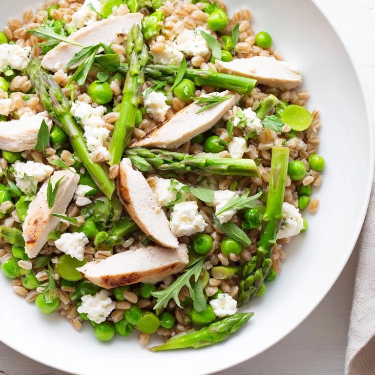 Save Spring hit early that year, and I'd just brought home a bag of farro from the farmers market without any real plan. The vendor told me to treat it like rice, but heartier, and I figured it would anchor something bright and filling. That night, I tossed together what I had: leftover grilled chicken, some peas from the freezer, and a handful of asparagus that had been calling my name. The lemony dressing pulled it all together, and I remember thinking this was the kind of meal I actually wanted to eat again and again.